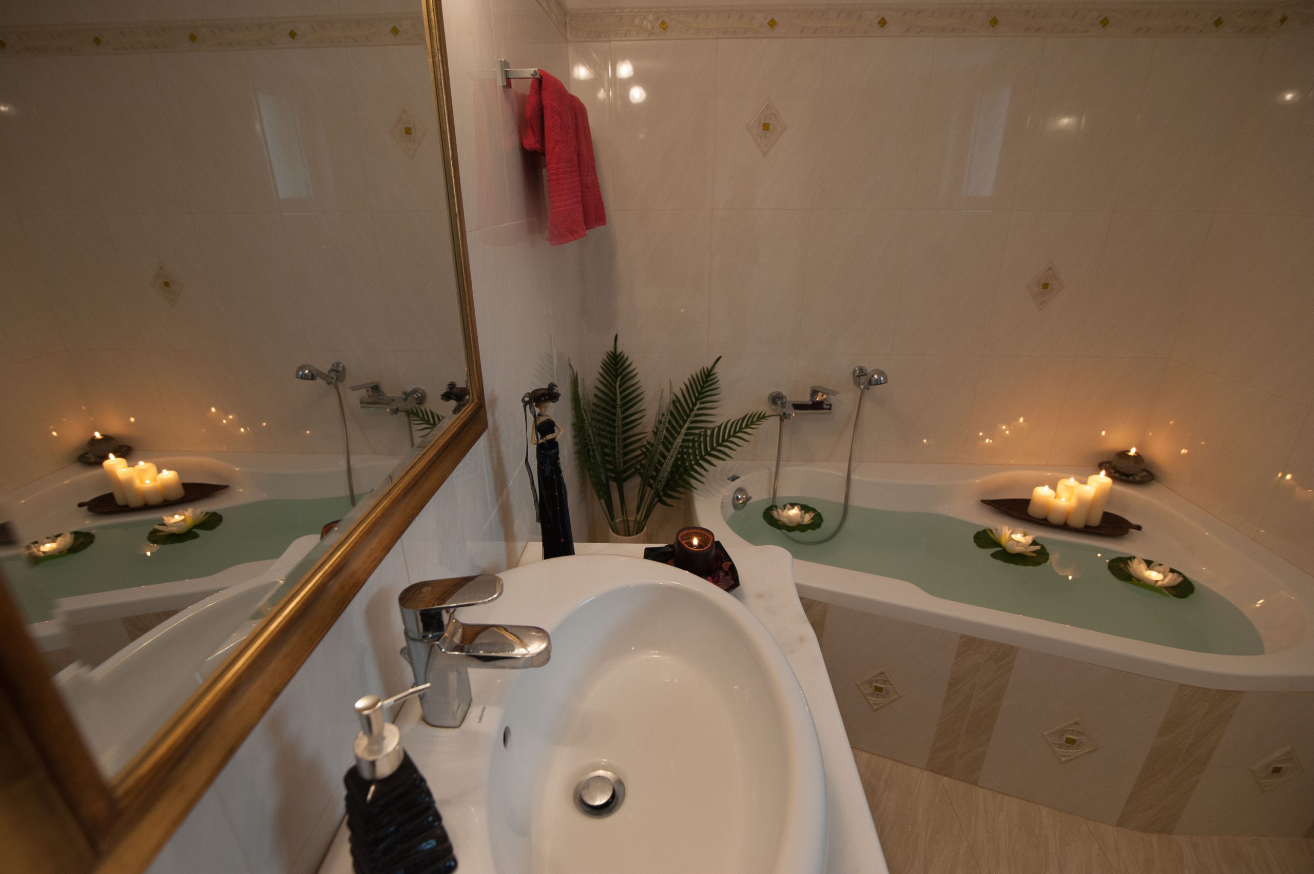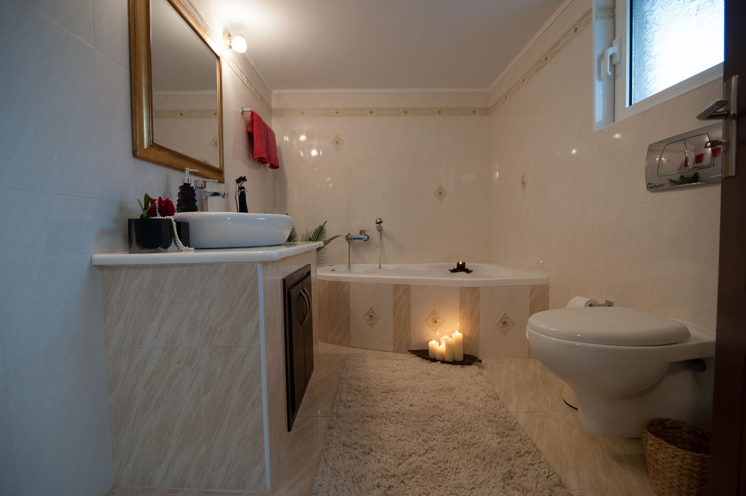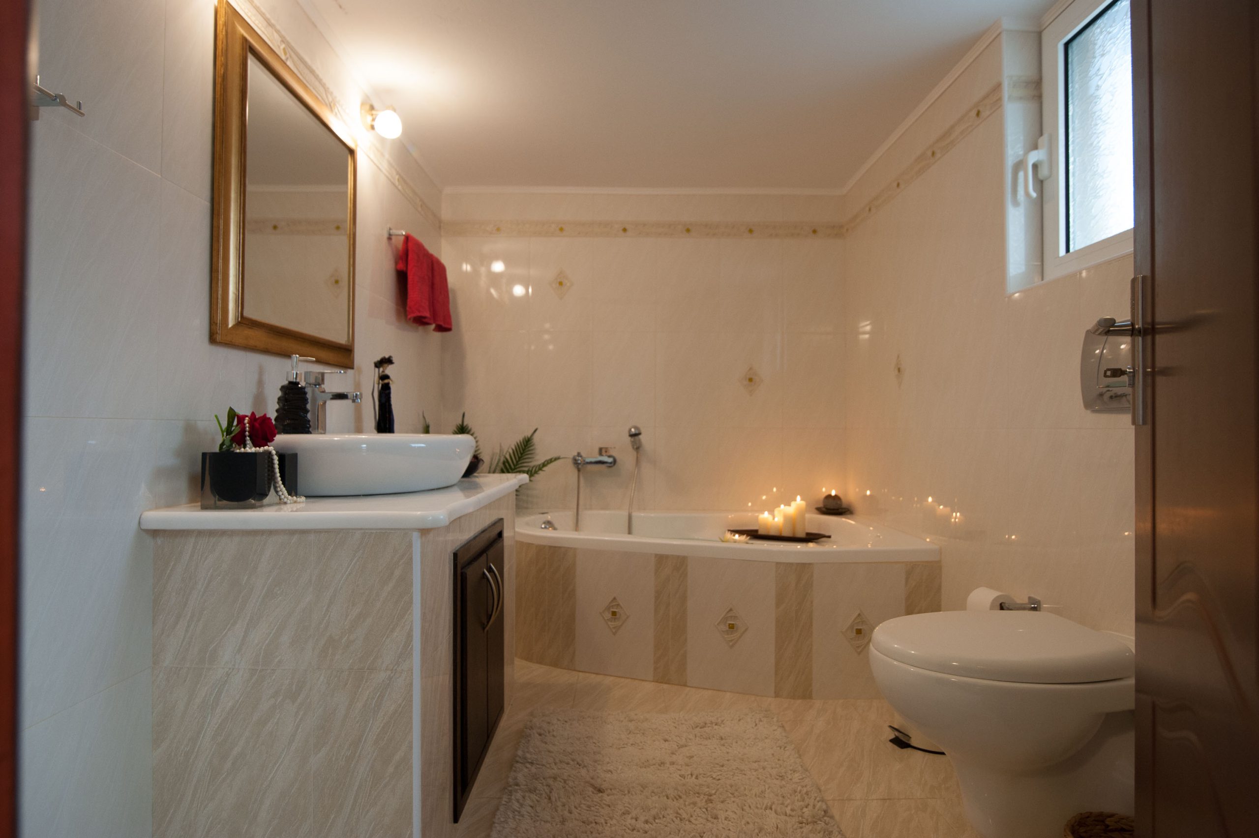 This villa has 4 bedrooms, a flat-screen TV with satelite channels, an equipped kitchen with a dishwasher and an oven, a washing machine, and 2 bathrooms with a hot tub.